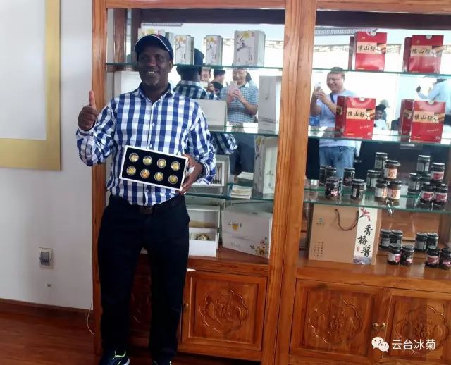 國際友人參觀云臺冰菊產(chǎn)品展廳,對冰菊有了一個系統(tǒng)而深入的了解。品嘗冰菊后,對冰菊的形美、味香做出了高度的肯定和贊揚!