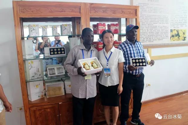 2017年8月4日,來自非洲肯尼亞、馬拉維、南非、塞拉利昂、阿爾及利亞、貝寧、布隆迪、吉布提、喀麥隆、科特迪瓦、馬達加斯加、馬里、尼日爾、剛果(金)14個國家的46名國際友人來到【云臺冰菊】參觀、考察、調(diào)研、交流。本公司董事長宋曉龍先生熱情接待了來訪友人,并親率云臺冰菊接待組帶領(lǐng)來訪友人參觀云臺冰菊種植基地和產(chǎn)品展廳,就云臺冰菊的歷史淵源、發(fā)展歷程、種植過程及特色亮點作了生動而詳細的介紹。