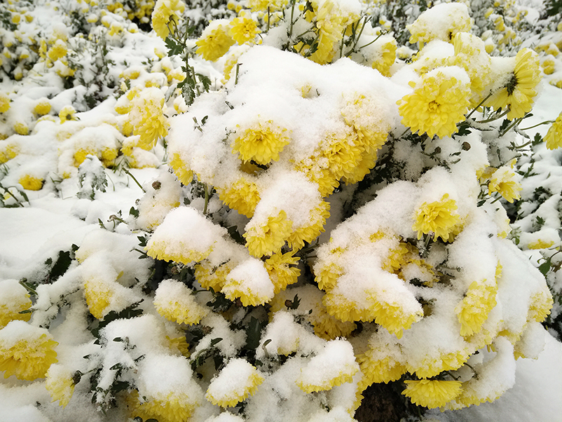 云臺(tái)冰菊在冰雪中盛開(kāi)